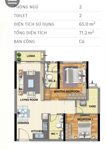 Diện tích: 71m2 (Tim tường).